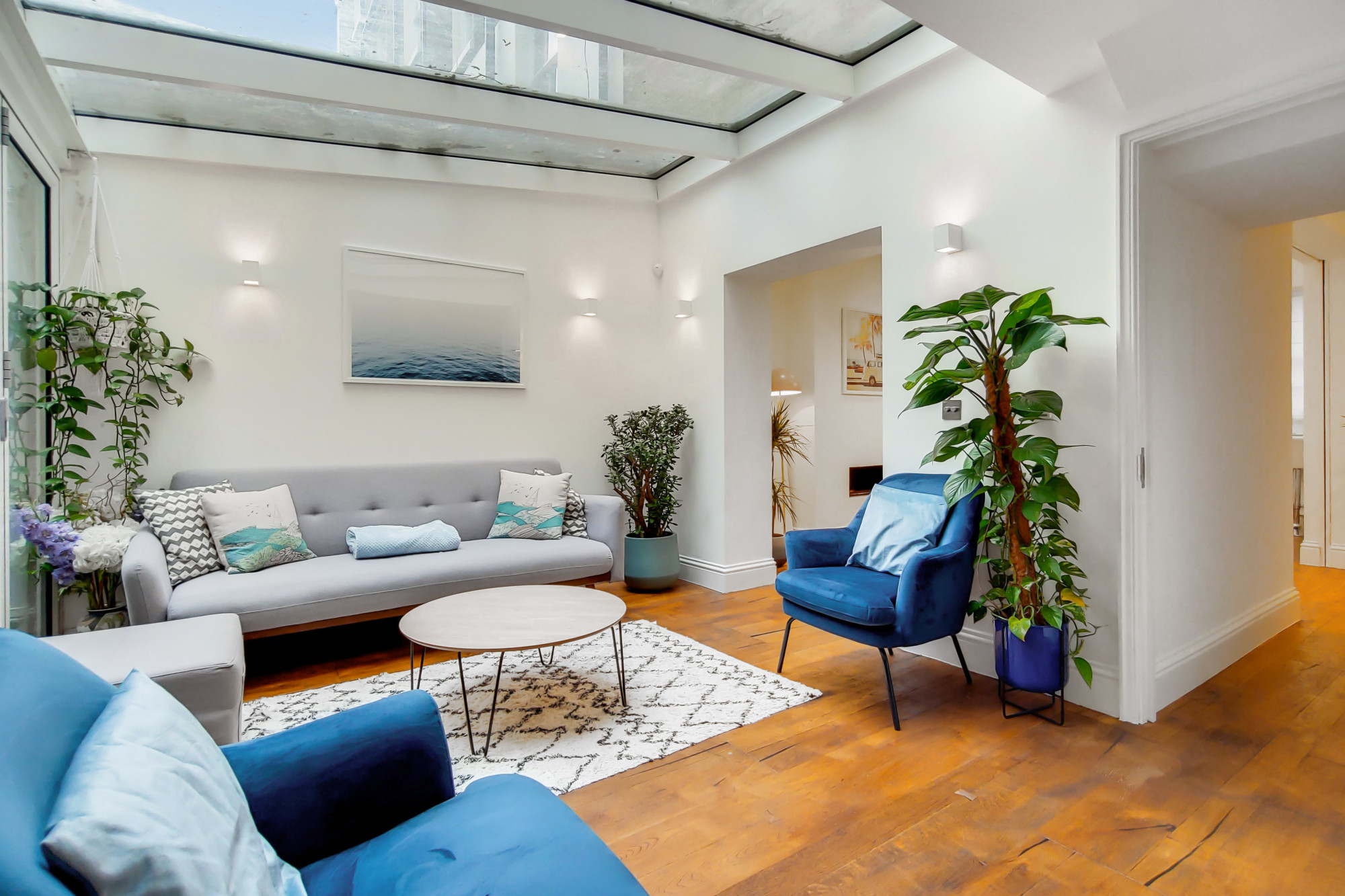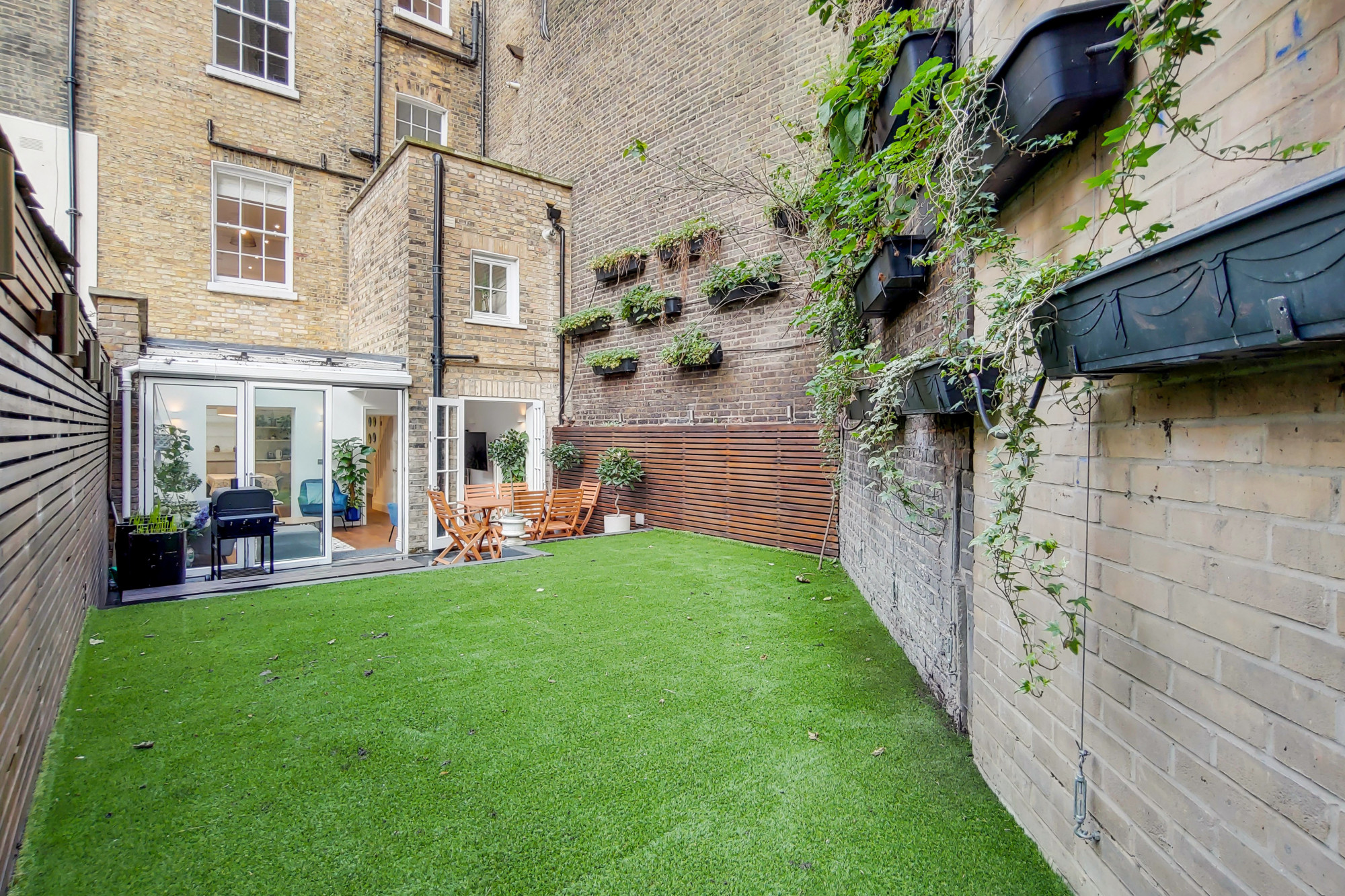 The ground floor offers a double reception room with high ceilings, solid wood floors and contemporary fireplaces. The superb well fitted kitchen, situated on the lower ground floor, leads to a wonderful breakfast/dining room which in-turn leads into a fabulous garden room with bi-folding doors opening onto the modern walled garden. The master bedroom suite occupies the first floor, with high ceilings, full-length sash windows, with shutters, and an indulgent en-suite bathroom.